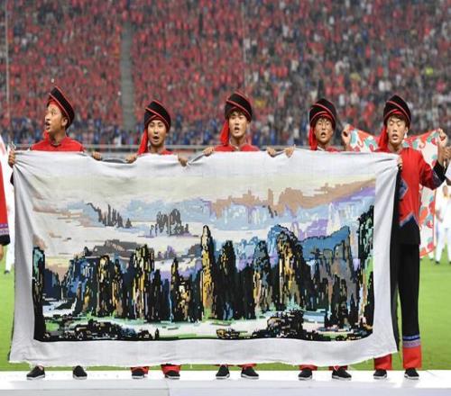 新华社照片,长沙,2025年9月7日 9月7日,张家界队在开幕式上。 今年9月至12月,湖南14个市州组队出征“湘超”,周五、周六、周日为比赛日。13轮单循环制常规赛后,前八名进入淘汰赛并最终决出冠军。 新华社记者 陈振海 摄
