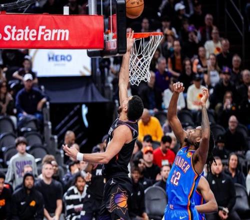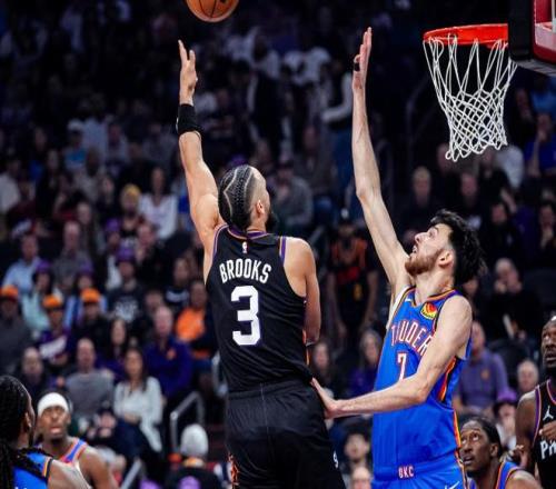 这一个比赛日,雷霆奔赴菲尼克斯客场挑战太阳,本场比赛客场作战的雷霆一度靠着出色的整体进攻,建立起了18分的领先优势,不过太阳没有放弃,顽强抹平分差,并且靠着布克最后0.7秒的三分绝杀,以108-105终结了面对雷霆的八连败。