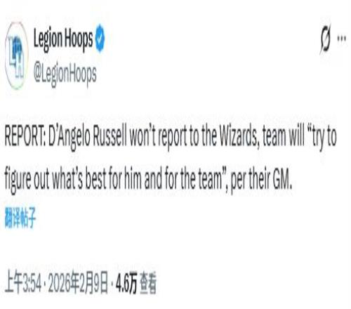 北京时间2月9日,在今年NBA交易截止日前,华盛顿奇才通过一笔以安东尼-戴维斯为核心的多方交易,得到了多名球员,前全明星球员拉塞尔也被包含在这笔交易中。不过,奇才总经理威尔-道金斯透露,拉塞尔将不会向球队报到。