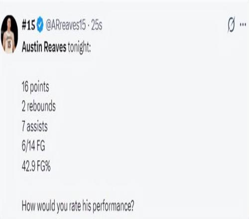 末节里夫斯登场一个失误,随后抛投挽尊。随后里夫斯突破失误,里夫斯中投打铁,里夫斯续命三分不中,末节里夫斯只拿2分,整个下半场7中1+三分3中0只拿4分,虎头蛇尾表现不佳。